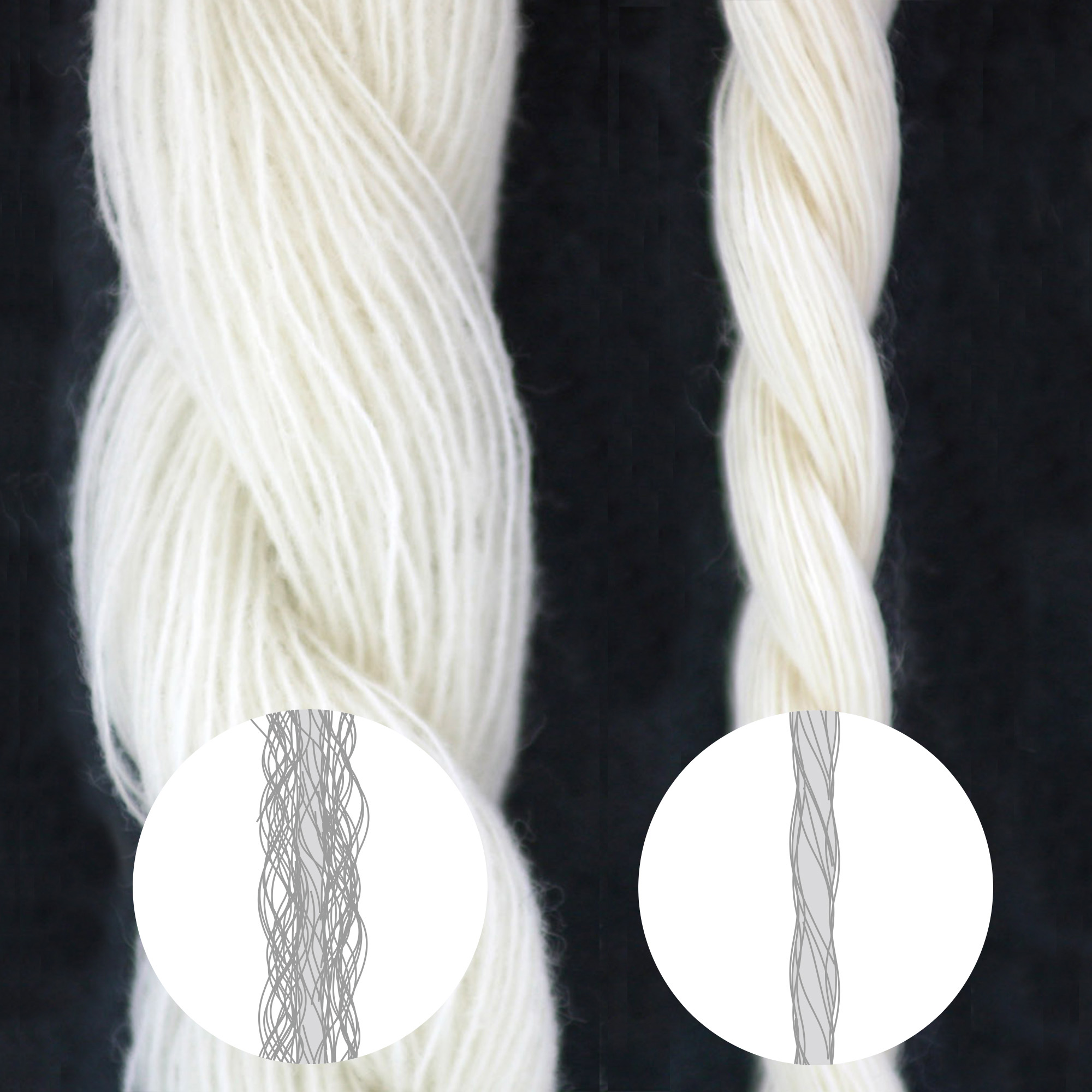 A more delicate, and beautiful super fine wool yarn. The two-folded yarn 2/200 produces extremely fine textured, beautiful, thin, and soft wool textile, just like a robe of feathers.