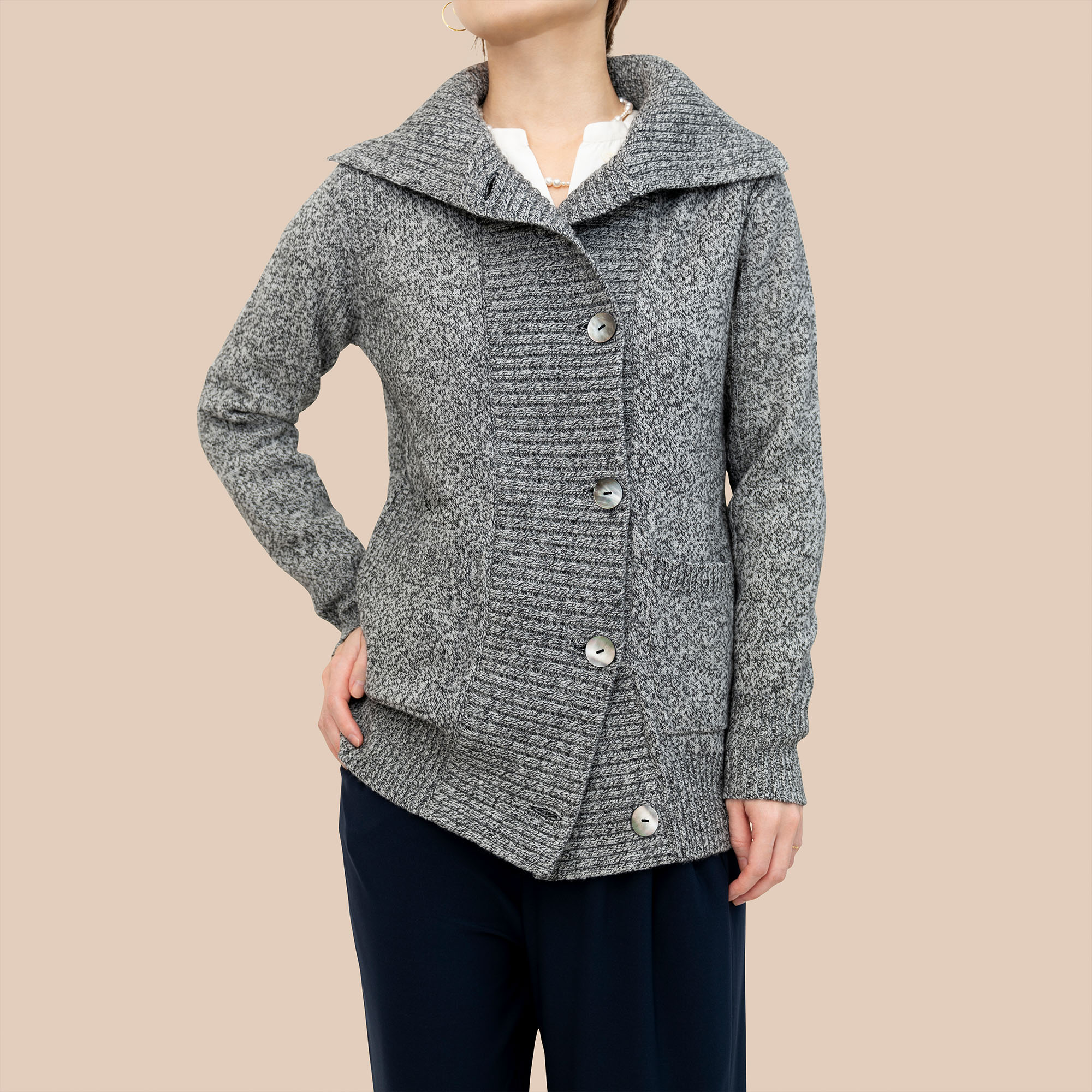 100% wool outerwear made of KARL KARL™ YARN can change the preconception that winter clothes are heavy. You can simply wear a 100% wool outer wear made of KARL KARL™ YARN over light clothes and have the same warmness as wearing a heavy coat and/or several layers of clothes because KARL KARL™ YARN provides the same amount of warmness with 30% less weight compared to standard wool yarns. This yarn maintains its bulkiness for a longer period and the fiber doesn’t wear out easily either, making clothes last longer and sustainable.