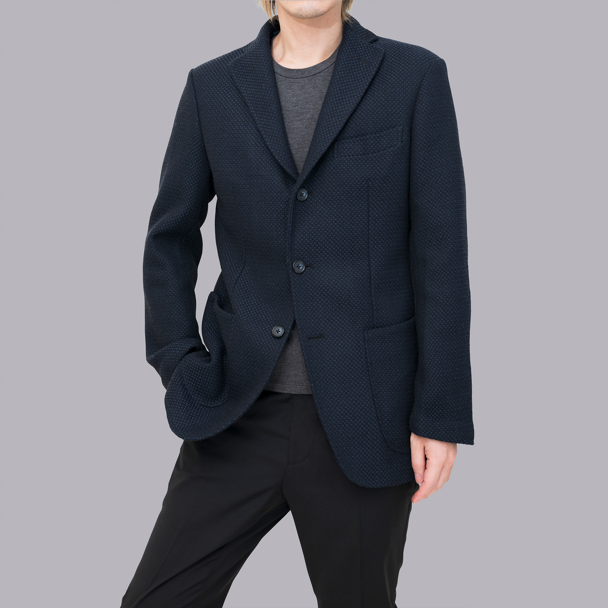 「超美的」次世代ウールストレッチ素材。つややかで上品な光沢をかもし出す糸により、ストレッチ素材でありながら高級感ある素材を実現しています。