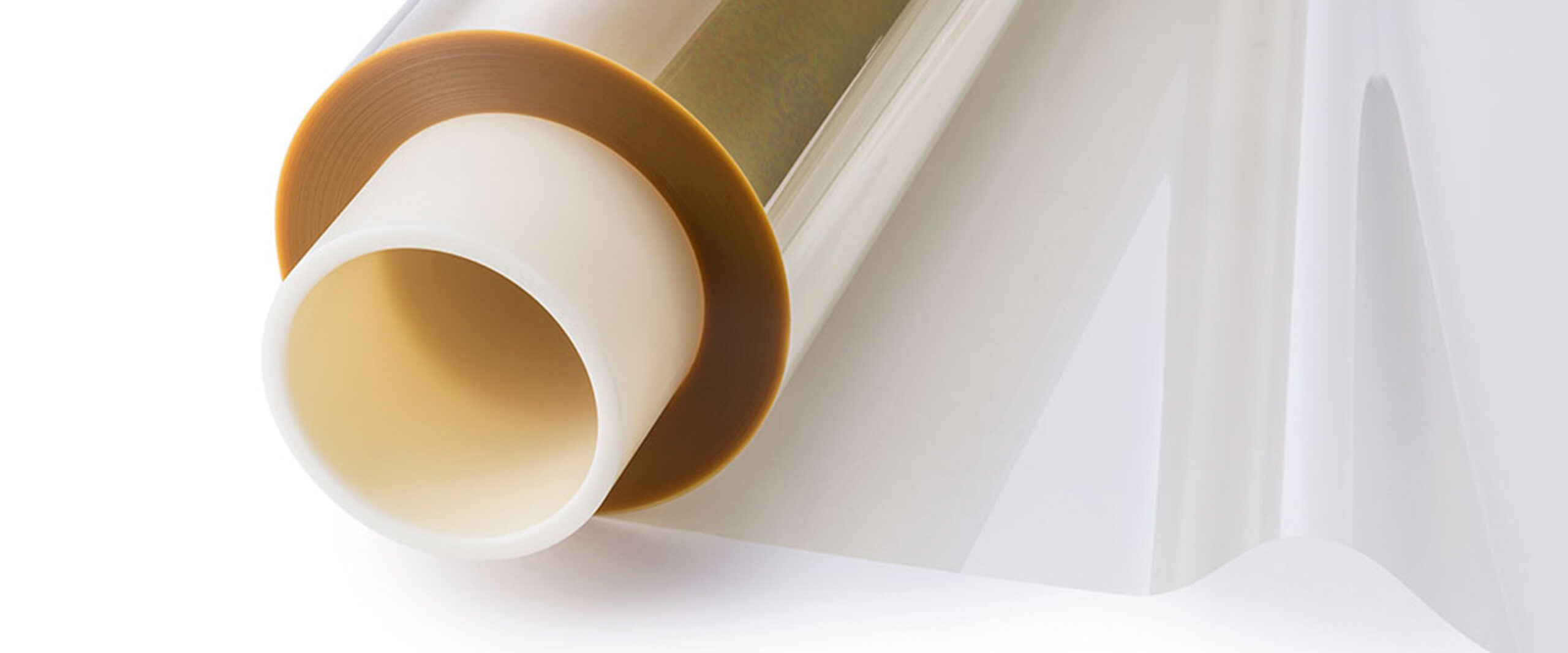 300℃の耐熱性と可視光透過率88%以上の透明ポリイミドフィルム。連続ロールフィルムに成形する装置までを自社で開発し生産体制を整えています。