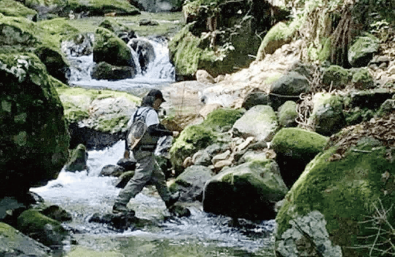 シーズン中は山に釣りに行きます。タモとフライは自分で作った物。