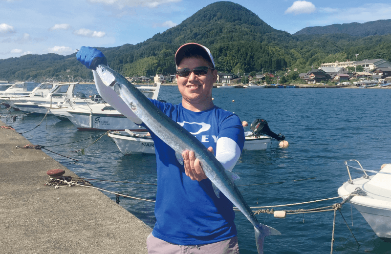 ダツという魚を釣りました。釣ったあとは、自分でさばいてお刺身に。