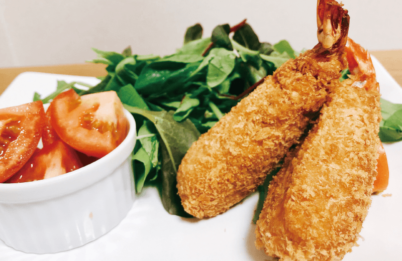 大好物のエビフライを作りました。彩りや盛り付けを意識して作っています。